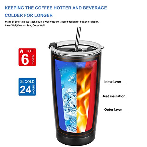 ●Best Insulation Made of Highest Quality Premium 304 18/8 Food Grade Stainless Steel,double Wall Vacuum layered design for better insulation which give a promise keep the coffee,Ice Drink, Hot Beverage hotter and colder for a longer time than others; No sweat thermos due to the perfect double wall vacuum insulation.