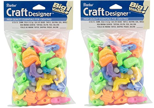 Fun Shapes Pony Beads 4oz-Sea Life - Turtle, Dolphin, Seal Whale (2-Pack)