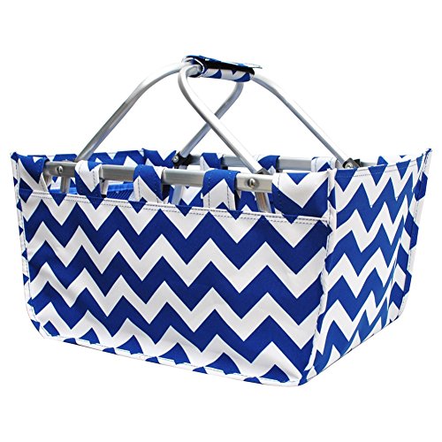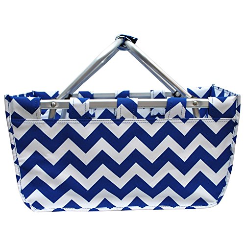 -. Brand : NGIL -. Color : Royal -. Department : womens -. Feature : Double Metal Handle Snap together with Velcro / 2 net pockets on inside, Rubber feet on bottom / Detachable Metal Frame, Collapsible / Material: Canvas / Dimensions: 17" X 9" X 15½" -. Model : ZCM696_002 -. MPN : ZCM696_002 -. PartNumber : ZCM696_002 -. ProductGroup : Apparel -. ProductTypeName : LAGE -. Title : Royal Blue White Chevron Canvas Market Picnic Basket