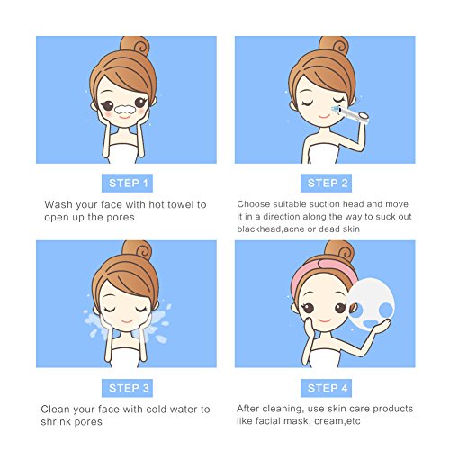 TIPS: Do not use the device on one area of the skin for more than 2 seconds. Use a warm towel to open your pores before using this device. Choose the lowest suction setting at first until you get used to using it. We recommend using it for no more than 2 minutes, once or twice a week.