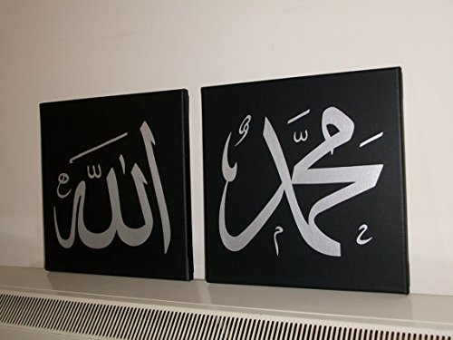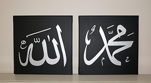 -. Title : Global Artwork - Handpainted Arabic Calligraphy Islamic Wall Art 2 Piece Black and White Oil Paintings on Canvas for Home Decor with Frame Ready to Hang