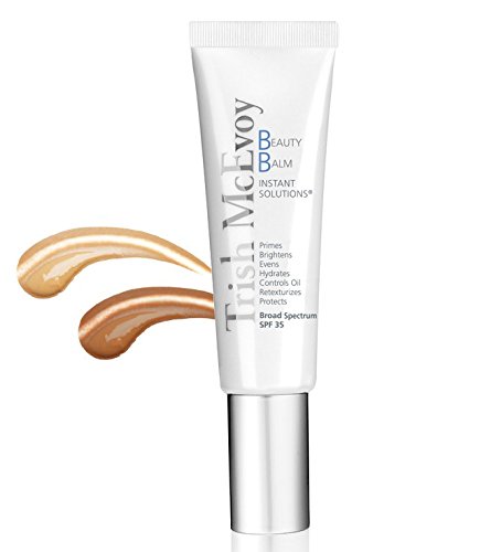 -. Feature : This Broad Spectrum SPF 35 Trish's Beauty Balm Instant Solutions is an all-in-one skin perfecter that instantly P.R.Imes, brightens, evens, hydrates and controls oil. Rejuvenating peptides improve skin's texture quality over time while SPF helps prevent sun damage. Worn under foundation or alone, it minimizes shine and delivers a look of healthy, natural coverage. Made in USA.
