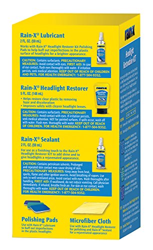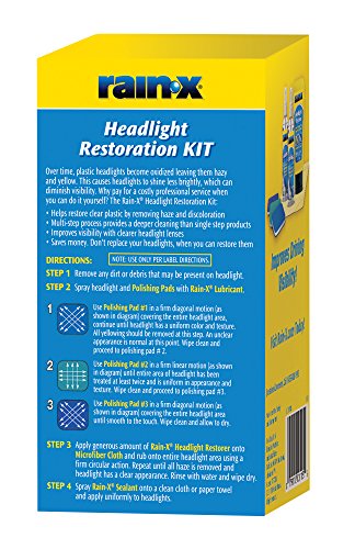 Studio : Rain-X Publisher : Rain-X Binding : Automotive Product Description The Rain?X Headlight Restoration Kit provides a deep clean to yellowed, hazed headlights with the use of a specially designed polish and sealant. Over time, headlight lenses become oxidized rendering them hazy and yellow. This causes headlights to shine less brightly, which is dangerous for the driver and others on the road. For the last 40 years, Rain?X has provided drivers with products to help them outsmart the elements. All Rain?X products are designed to help keep our customers a confident step ahead of Mother Nature on the road. 0