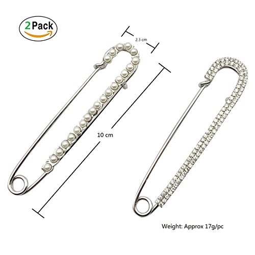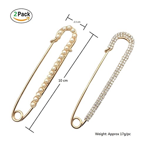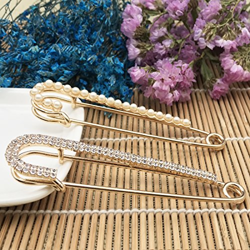 -. Title : JJTZX Pack of 2 Women Crystal and Pearl Big Safety Pin Brooch Knit Scarf Brooch Pin Mother's Day Gifts
