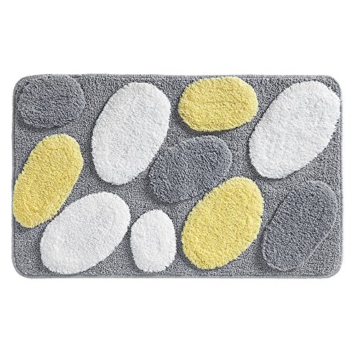 Crafted of plush microfiber polyester, this nature-inspired pebble design brings the outdoors indoors. Treat yourself to a rug that is comfortable and absorbent.Feature