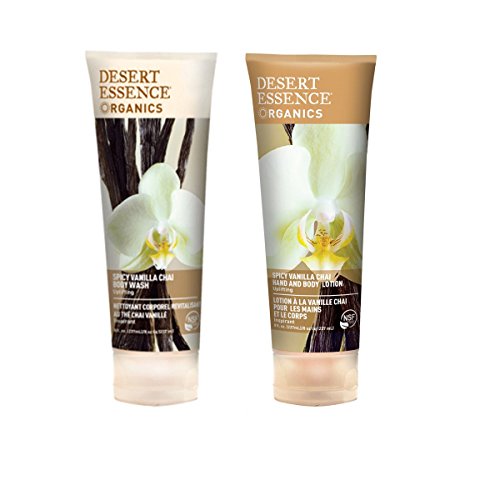 Desert Essence Spicy Vanilla Chai Body Wash and Desert Essence Spicy Vanilla Chai Hand and Body Lotion Bundle With Organic Yucca Cactus, Organic...