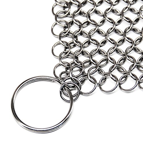 Blackseal Stainless Steel Cast Iron Cleaner Stainless Steel Chainmail Scrubber with Silicone Hot Handle Holder XL 7x7 inch Decontamination Scraper Opener
