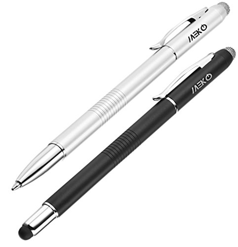 - Title : MeKo® 2Pcs [3 in 1 Series] Stylus pen ** MICRO FIBER TIP(replaceable) + RUBBER TIP(replaceable) + FINE BALL PEN(refillable) ** for ALL Capacitive Touch Screen Smartphones ,Tablets, PC - Extras 2 rubber tips +2 Refill ink - (Silver&Black)
