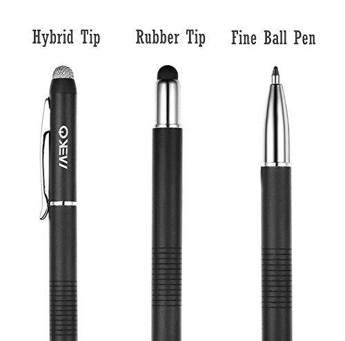 - Feature : Stylus Length:5.5"(140mm); Pen barrel diameter 0.35"(9mm);Rubber tip diameter: 0.22" (5.8mm);Micro Fiber tip Diameter: 0.24" (6mm) ;Made from stainless steel and Aluminum, no plastic parts, real pen feeling / Compatible with all capacitive touch screen devices (Compatible with Apple iPad 1 and 2, iPhone, iPod, Kindle Fire, Kindle Touch, Motorola Xoom Tablet, Galaxy, and Blackberry Playbook Virtuoso Touch) / Unique 3-in-1 design - (Micro-fiber Tip + Rubber Tip + Fine Ball Pen) ;Dual-sided Stylus Tips are perfect for scrolling and surfing the web, while the other side features an Integrated Ink Pen (with highest-quality ink) - perfect for taking paper notes,Conveniently designed in pen form, perfect for carrying around / Package included : 2Pcs Stylus(Silver & Black);2 replacement rubber tips; 2 Refill inks;Replacement Fiber tips Sold Separately / To find extra replacement tips , Fiber tip - please search ASIN: B0131JLM3U ; Rubber Tip - please search ASIN: B0131MX4BA ; Refill inks - please search ASIN: B013RV67EQ