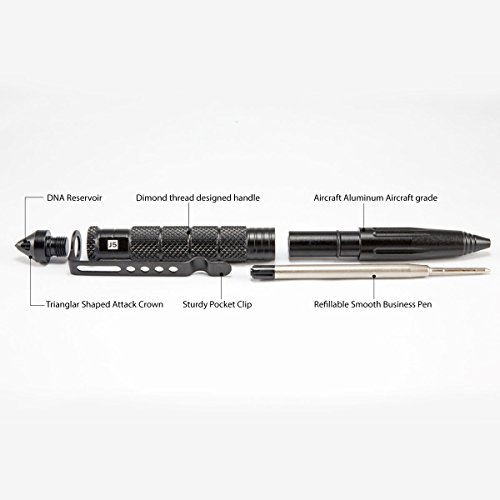 J5 Tactical Pen - 4 in 1 - Black Ball Point, Emergency Glass Breaker, DNA Collector, Personal Defence Device