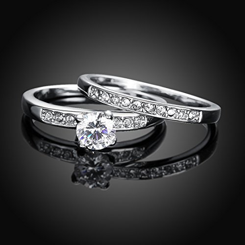 - Title : [Eternity Love] Women's Pretty 18K White Gold Plated Solitaire CZ Crystal Engagement Rings Set Best Promise Rings for Her Anniversary Wedding Bands TIVANI Collection Jewelry Rings