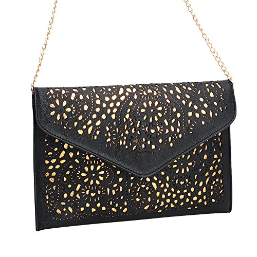 -. Feature : Material: Faux Leather,more environmentally friendly and durable / Size:app. 20cm*30.5cm / This perforated clutch has a beautiful background to accentuate the cut out pattern. / Versatile design - add or remove the shoulder chain / Occasion:Dating,Working Place,Shopping,Traveling,Business,Meeting etc