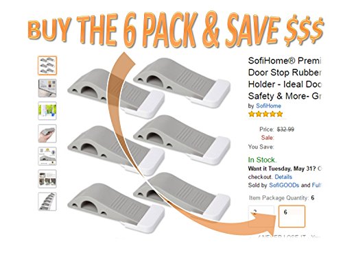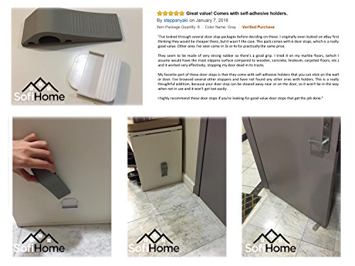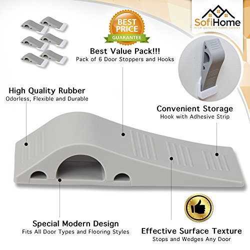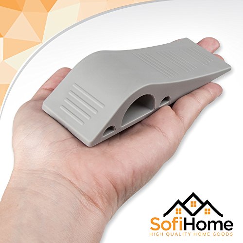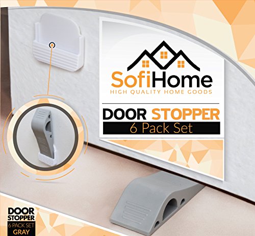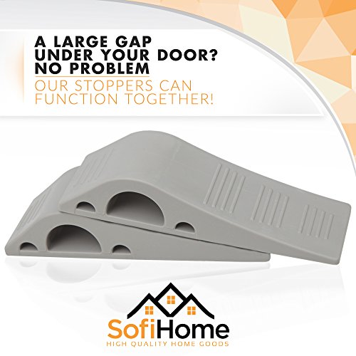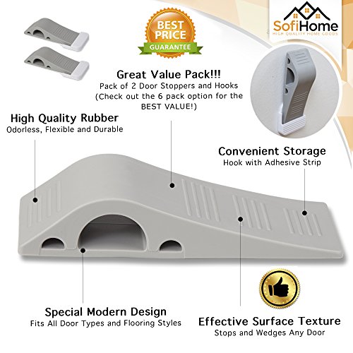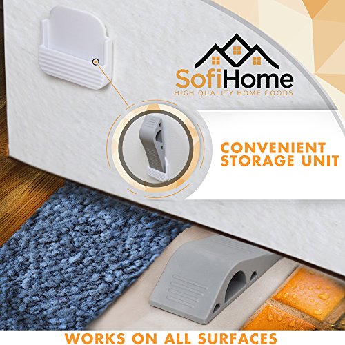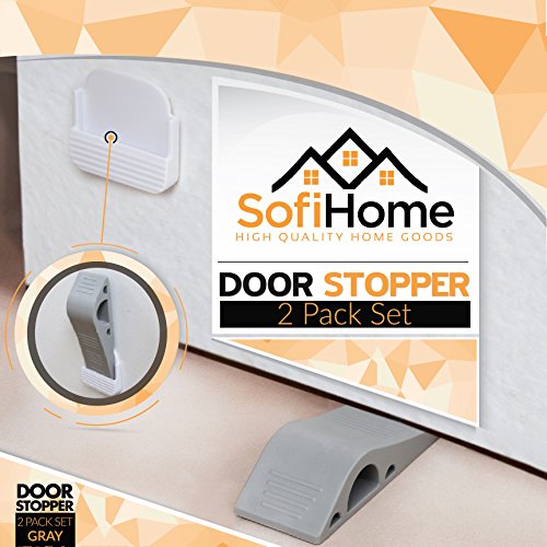 -. Title : SofiHome® Premium Door Stopper Set - 2X Heavy Duty Door Stop Rubber Wedge with Decorative Handy Storage Holder - Ideal Doorstop for Draft Stopping, for Baby & Pet Safety & More- Gray Door Stops 2 Pack