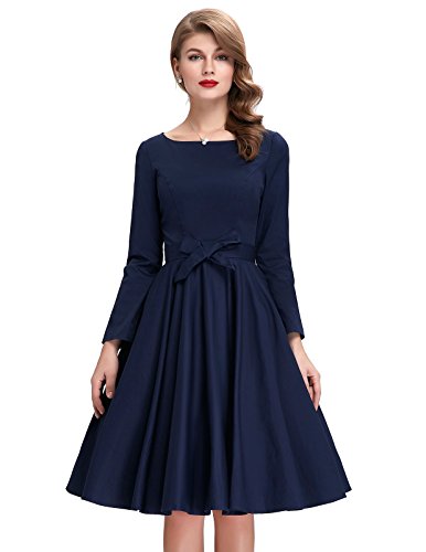 Title : Vintage 1950's Hepburn Long Sleeve Round Neck Swing Dress BP192-2 L
