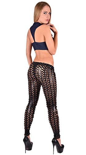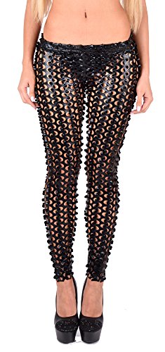 -. Feature : Leggings in Wetlook Optik mit raffinierten Löchern / Mit elastischem Bund / Weiches und dehnbares Material / Ein echter Hingucker auf jeder Party / Absolutes Highlight!