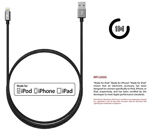 Premium Heavy Duty Braided Apple Cable: Sturdy, Durable and Tangle-free Nylon fabric raided Lightning to USB Data Sync cable with Aluminum Connector can bear 4000+ bending test.The braided exterior adds extra protection to the inner wires from coming out.It designs for long term use, several times longer than other cables.