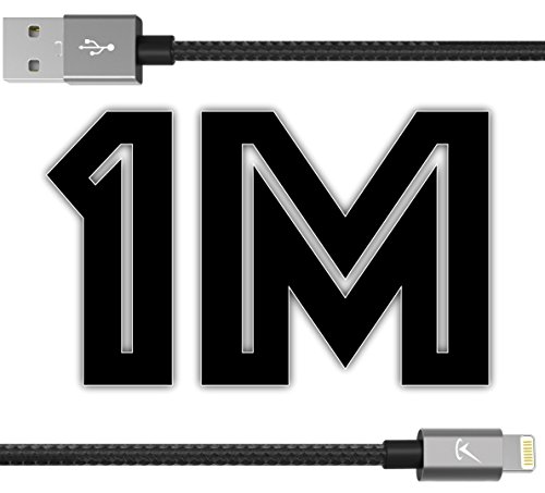 [Apple MFi Certified] Volts© 3ft Black Nylon Braided Lightning to USB Cable Charger w/ Aluminum Case on 8 pin Connector. Tangle Free Premium Accessories Made for iPhone, iPad, iPod. (3.3ft / 1 meter Space Gray)