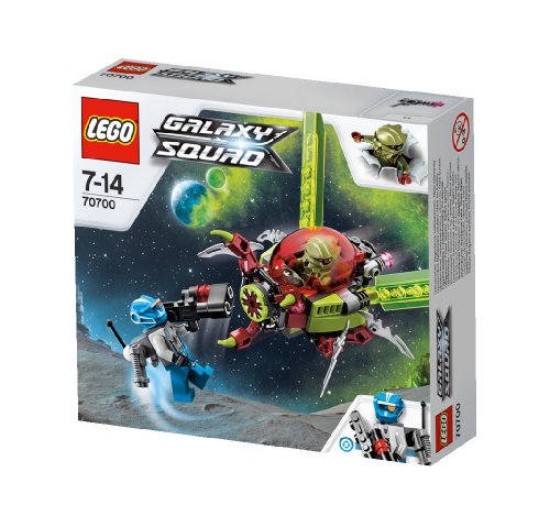 LEGO? Galaxy Squad Space Swarmer features grabber mouth, opening cockpit, moving wings and poseable legs. Includes 2 minifigures with assorted weapons. For 7 years and over.