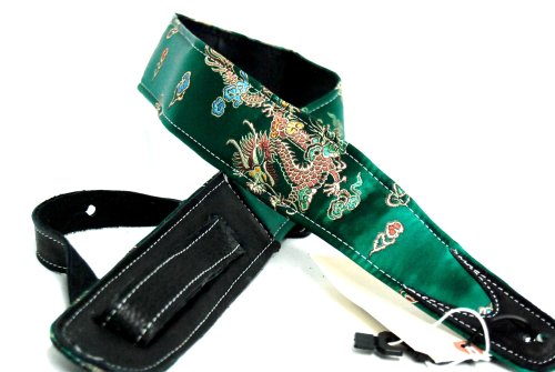 -. Title : Jodi Head Green Dragonface Brocade Sleek Leather Adjustable Tail Guitar Strap