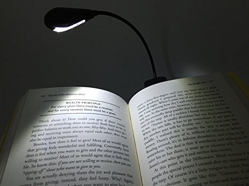 DO YOU LOVE TO READ AT NIGHT BUT DON'T WANT TO DISTURB YOUR FAMILY OR FRIENDS? This reading light comes with very secure padded clamp. Also, has fully adjustable gooseneck that can be adjusted the way you want it. Clamp opens up to 1 inch. This light is great! You may clip it to paperbacks, hardbacks, notebooks, and others.