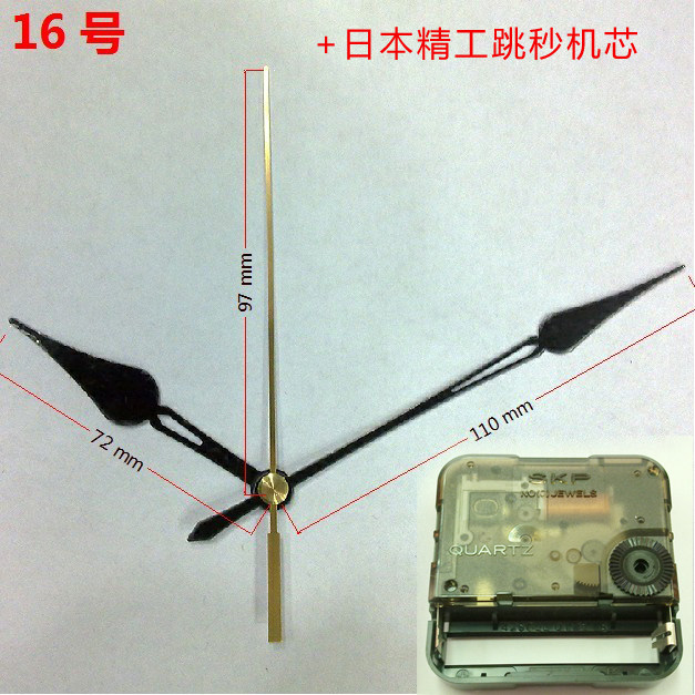 16号针尺寸 黑色时针72mm,黑色分针110mm,金色秒针97mm