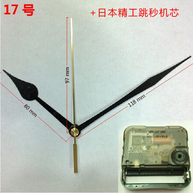 17号针尺寸 黑色时针80mm,黑色分针118mm,金色秒针97mm