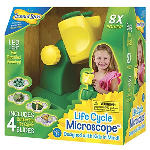 INSECT LORE KID'S MICROSCOPE - 8X MAGNIFYING GLASS WITH LED LIGHT - INCLUDES FOUR BUTTERFLY LIFE CYCLE SLIDES
