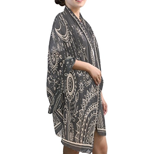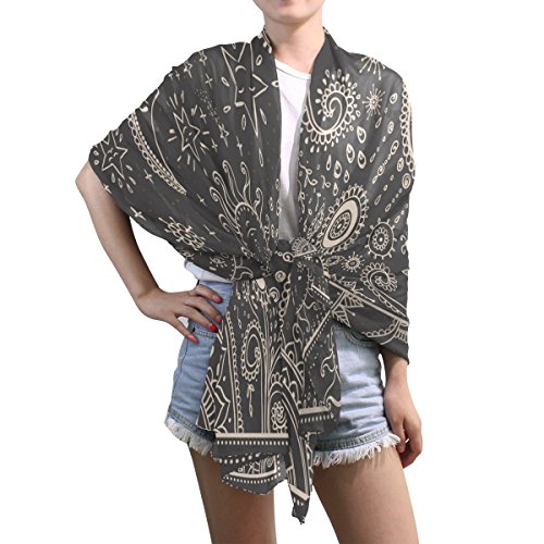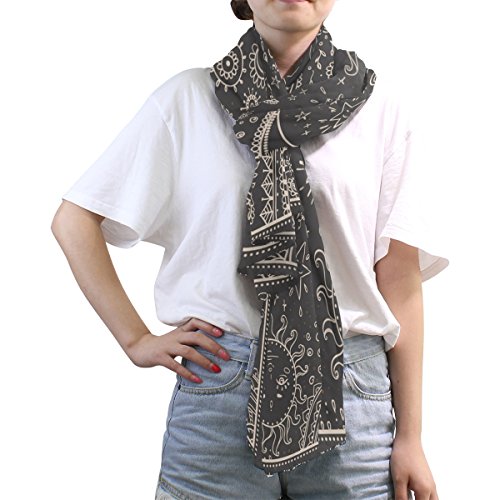 (ALAZA)/Accessories/Cold Weather Accessories/DIRECT FROM USA/ALAZA Vintage Moon Sun Emoji Emotion Mandala Chiffon Silk Long Scarf Shawl Wrap