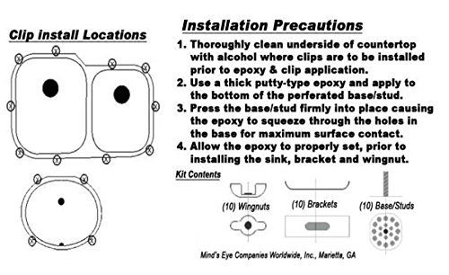 Easy to Install - No Drilling Required: By using epoxy sink clips performing an installation is a breeze. They are so much easier than the ones where you have to drill holes to screw them to the countertop. The epoxy holds them very secure and the sink is very stable and doesn't move at all