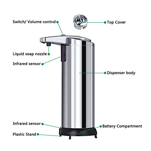 Automatic Touchless Soap Dispenser, Ansoon Fingerprint Resistant Liquid Infrared IR Sensor Soap Dispenser for Bathroom or Kitchen with Waterproof Base ( 280ml)
