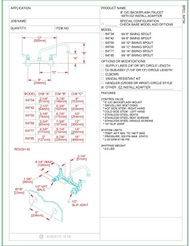 Fisher 64777 Backsplash Mount Faucet with 14" Swing Spout, and EZ Install Adapters, 8"