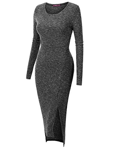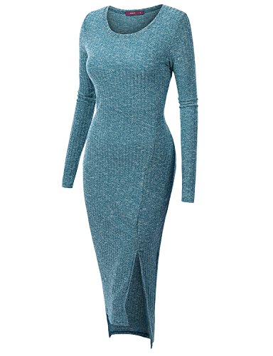 Doublju Womens Round Neck Sweater Sexy Comfy Basic Dress