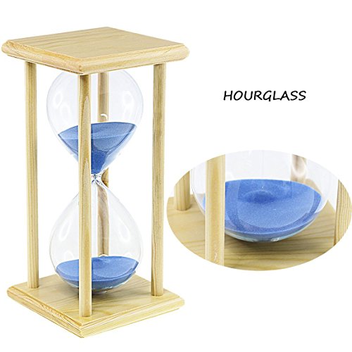 -. Title : XDOBO Hand-blown Hourglass in Wooden Stand, Sand Timer, Measures One Hour/ 30 Minutes