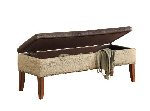 -. Feature : 1.8 density fire retardant foam / Featuring antique bronze accent nail heads / Convenient storage inside; 1.8 density fire retardant foam padding provides for comfortable seating or resting your feet / High quality construction / Some assembly required