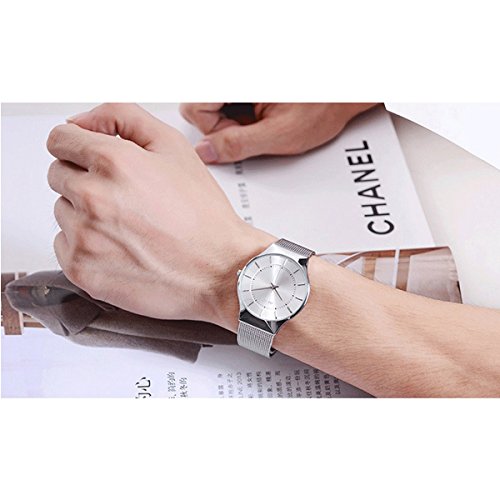 -. Feature : Ultra thin mesh stainless stylish quartzwatch light weight and comfortable to wear / Scratch resistanttempered glass mirror. Time 12 little peg scale, make the watch unique / Imported Japan quartz movement, keepprecise time. Nice battery use. / Waterproof stainless steel back cover, strongand sturdy in structure / A top fashion accessory and best gift