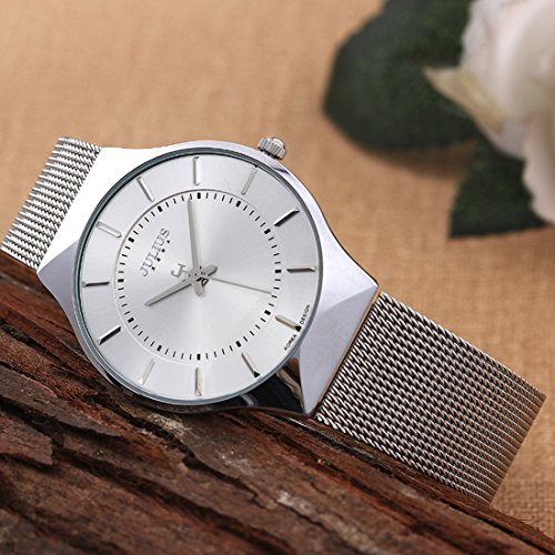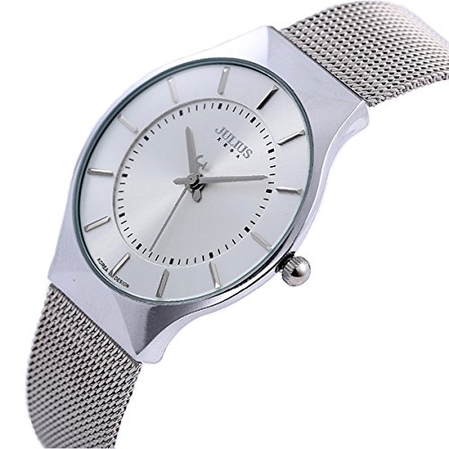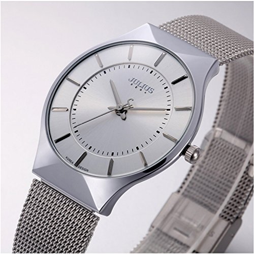 -. Title : JULIUS Men's White Dial Mesh Stainless Ultra Thin Stylish Quartz Watch Fashion Elegant Wristwatch