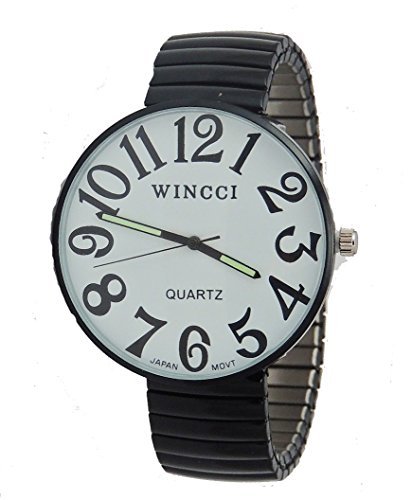Ladies Black Stretch Band Easy to Read Watch-Large face