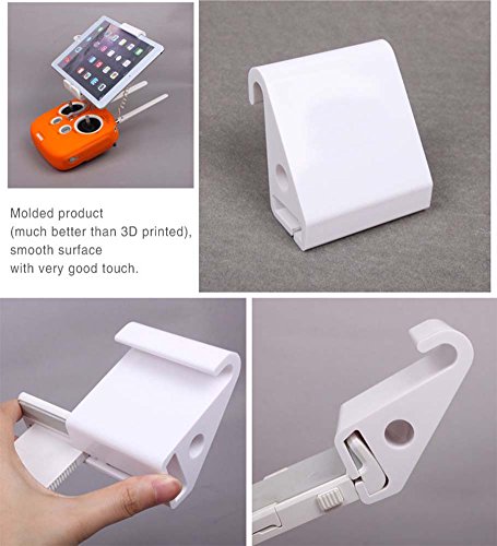 -. Feature : Compatible with DJI Phantom 4, Phantom 3 and Inspire 1 quadcopter remote controller mobile device holder / Made of high quality material hard plastic, strong and durable / Fit 13.3"/10"/9.7" tablets or smaller. With this extended mount, you can clip your iPad Pro, iPad, Galaxy Tab 4 10.1 or other tablets. / Light, Easy to install/remove from your original DJI Phantom 4 remote / Money-back satisfaction guaranteed!