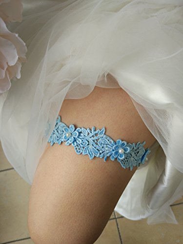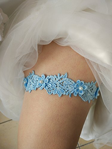 One piece lace bridal garter wedding garter legs garter belt for bridal and bridemaids P17 (Sky blue)