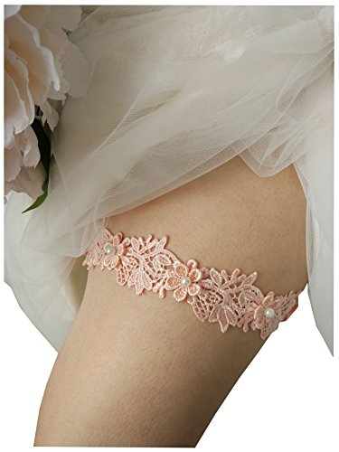 One piece lace bridal garter wedding garter legs garter belt for bridal and bridemaids P17 (Blush)