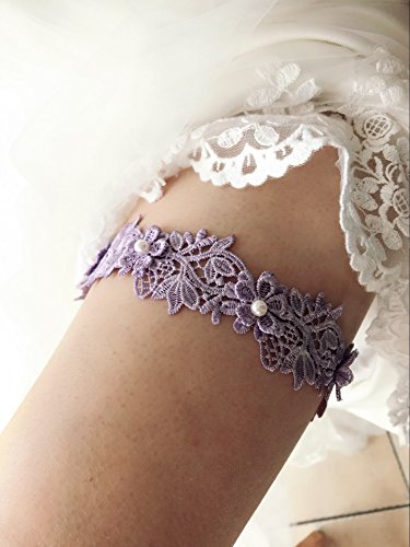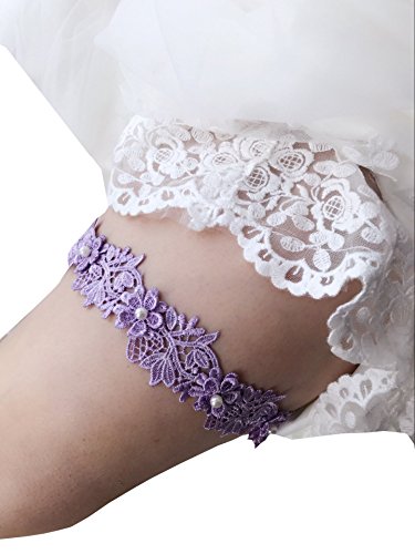 One piece lace bridal garter wedding garter legs garter belt for bridal and bridemaids P17 (Lavender)