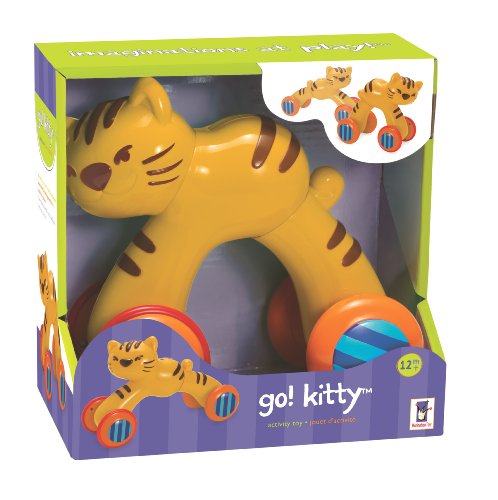 Press it down and watch it go. The press and go kitty is the perfect tool to support gross motor development in crawlers and walkers. The easy -to-grasp kitty speeds across the floor with one simple push. Just press down on the center of the kitty and let it go.Feature