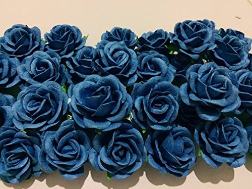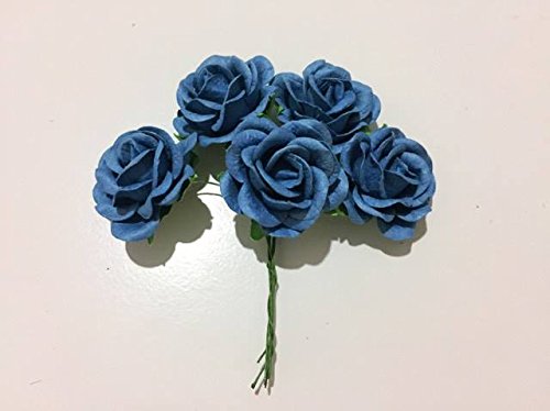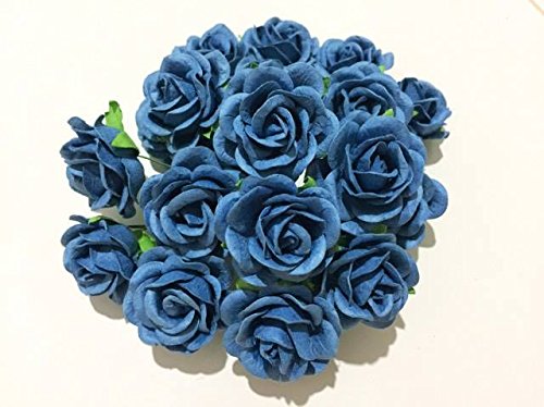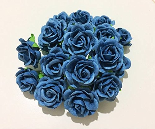 25 pcs Blue Rose color Mulberry Paper Flower 30 mm