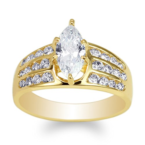 -. Title : JamesJenny Womens 10K Yellow Gold 0.7ct Marquise CZ Beautiful Channel Ring Size 4-10