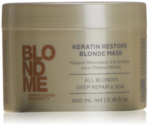 What it is: Schwarzkopf Professional BLONDME Keratin Restore Blonde Mask is developed with hydrolyzed keratin. What it does: Works to restore the hair, add moisture, and strengthen locks from within. Hydrolyzed Keratin intensively repairs the internal structure and strengthens hair elasticity. What else you need to know: It leaves hair soft, silky, healthy and shiny.