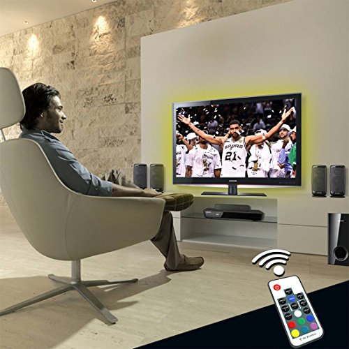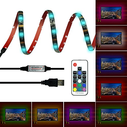 Achivy LED TV Bias Lighting strip, 20 Color, 39 Inches RGB 5050 LED USB Powered Backlight Strip with DC 5V LED Controller USB Cable and 17 Key Mini RF Remote Control for PC and Desktop PC