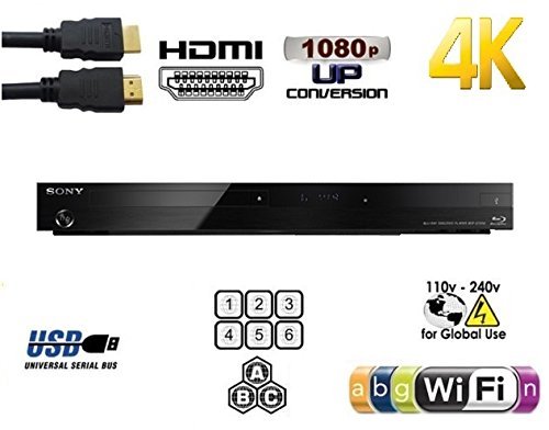SONY BDP-S7200 Dual Core 2D/3D 2K/4K Multi System Blu Ray Region Free DVD Player - Plays Zone A,B,C Region 1 2 3 4 5 6 0 on Any TV - PAL/NTSC Built-in Wi-Fi - Comes with 110-240 Volt to use World Wide & 6 Feet HDMI Cable