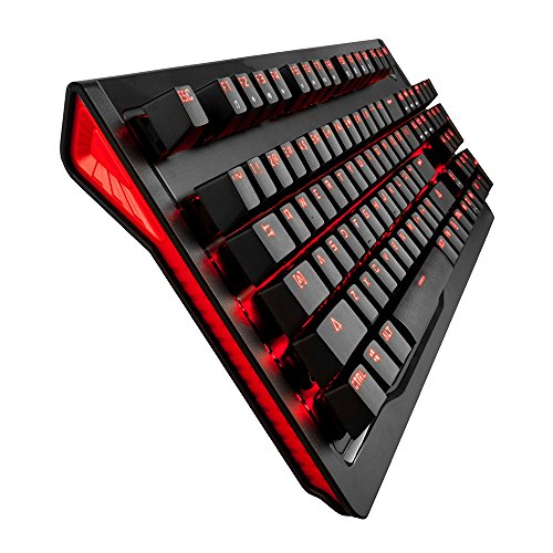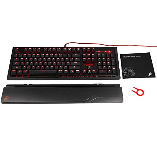 -. Feature : Full-size mechanical keyboard, 104 keys anti-ghosting with full N-key rollover, advanced optimized 1ST G switch for e-sport gamers / Golden plated USB, 180CM length dual-color(black & red) sleeved cable / Floating keys for better water & dust proofing and keyboard cleaning / Detachable magnetic wrist rest for better and comfortablegaming experience / Built-in high purity wiredrawing steel plate