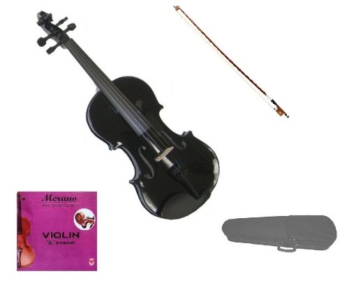 -. Title : GRACE 3/4 Size Black Acoustic Violin with Case and Bow+Free Rosin+Merano Brand E String