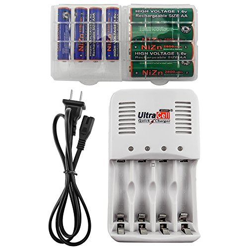 -. Binding : Electronics -. Brand : Ultracell -. EAN : 0616929576238 -. Feature : High Voltage 1.6v AA AAA improving performance for any high drain devices especially Digital Cameras / Environmentally Green - Both nickel and zinc are non-toxic and recycled easily and inexpensively / High Energy Density - The Ultracell+ battery has up to a 33% more the energy density over standard (NiMH/NiCd) rechargeable batteries / Automatic Charger with LED indicator function / Support to charge batteris with any capacity and 4 independent charging slots for individual battery charging and detectiondetection -. Label : UltraCell -. Manufacturer : UltraCell -. PackageQuantity : 1 -. ProductGroup : Speakers -. ProductTypeName : BATTERY -. Publisher : UltraCell -. Studio : UltraCell -. Title : UltraCell Plus NiZn 1.6v AA - 2800mWh, AAA - 1150mWH High Voltage Rechargeable Batteries With Battery Box and Charger (Combo for 4pcs AA, 4pcs AAA, 2pcs Clear Battery Boxes, 1pcs NiZn Charger) -. UPC : 616929576238